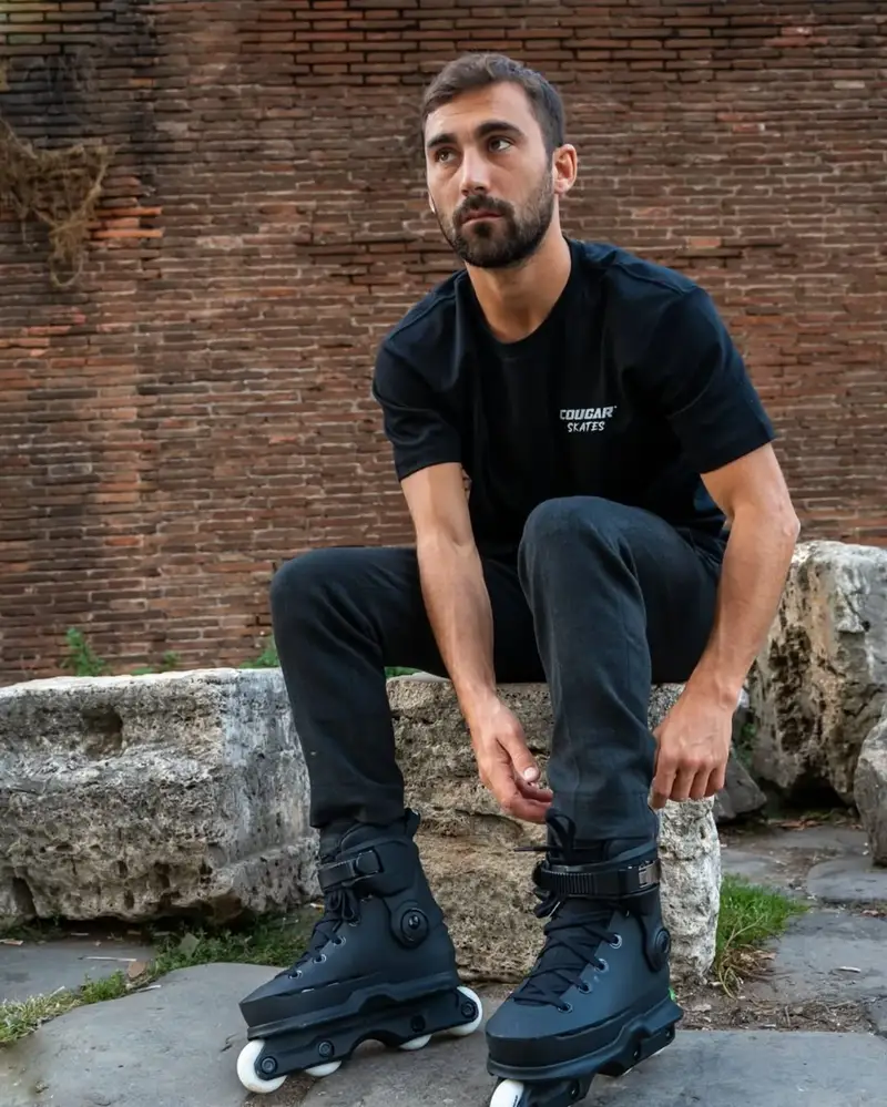 Los patines Cougar 7003 Aggressive están diseñados para patinadores de todos los niveles que buscan superar los límites. Julien Cudot es uno de esos patinadores que ahora usa los Cougar Skates y los domina a la perfección. Tras años de meticuloso diseño, investigación y pruebas, estos patines ofrecen estilo y rendimiento.