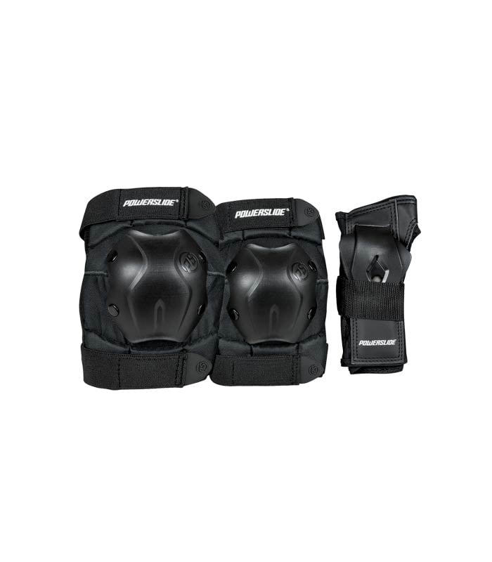 Powerslide PS-Standard set: cuando la seguridad es importante. ¡Seguridad primero! El juego de protección Powerslide “PS-Standard” para principiantes y patinadores avanzados presenta una gran tapa plana bien diseñada y materiales absorbentes de golpes de alta calidad, que garantizan la mejor protección durante sus actividades de patinaje. Las almohadillas anatómicamente preformadas están respaldadas con un forro textil muy cómodo de llevar. La manga del calcetín de algodón y las correas elásticas de velcro ajustan bien el protector y los mantienen perfectamente en su lugar. La combinación de una tapa dura y rígida y materiales de espuma de alta densidad proporciona la mejor protección. La serie estándar viene en un clásico color negro. El juego Powerslide PS-Standard es una compra segura y debe tenerlo para todos los patinadores.